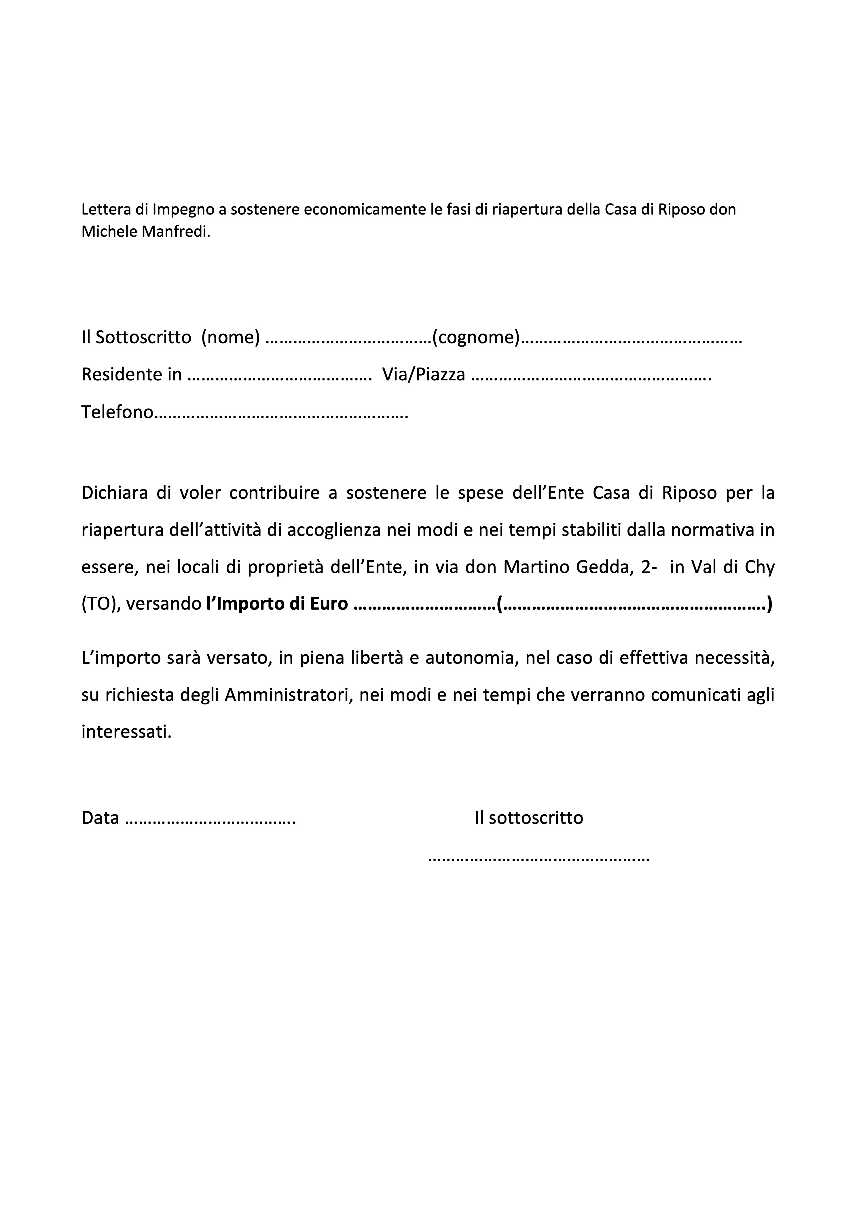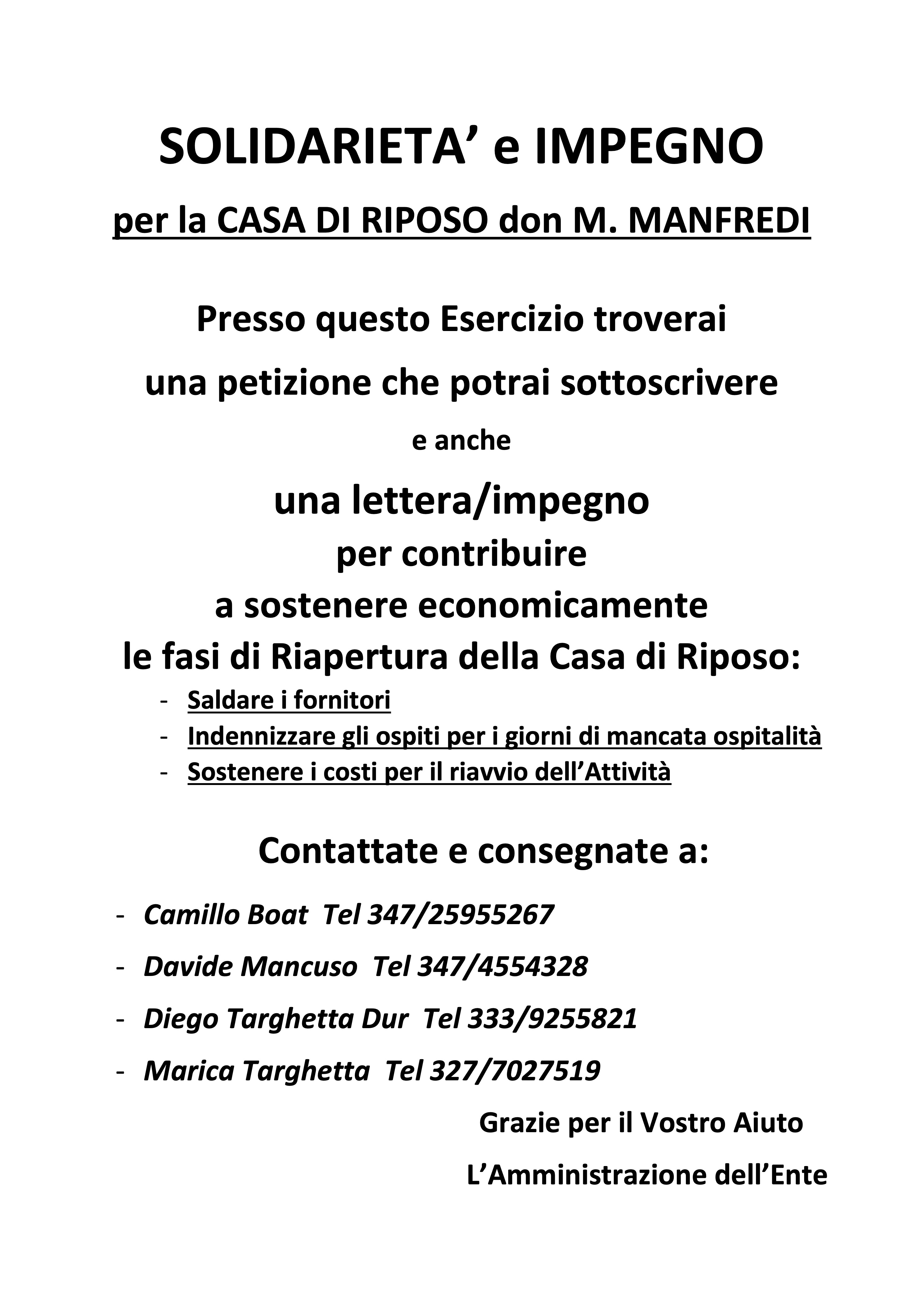 SOLIDARIETA’ e IMPEGNO per la CASA DI RIPOSO don M. MANFREDI