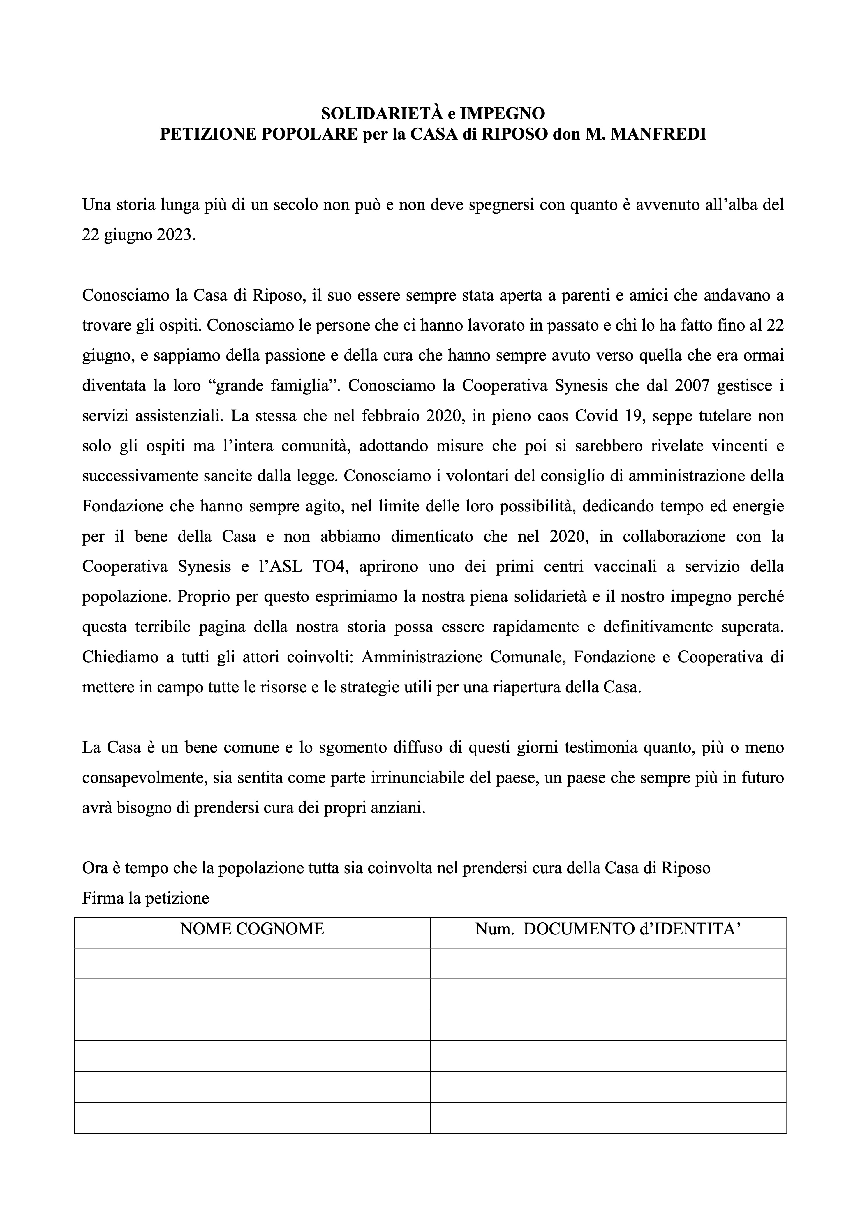 Presso questo Esercizio troverai una petizione che potrai sottoscrivere e anche una lettera/impegno per contribuire a sostenere economicamente le fasi di Riapertura della Casa di Riposo: